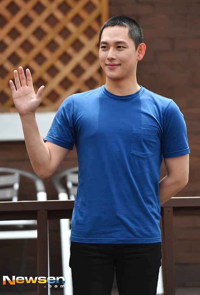 배우 임시완이 7월11일 오후 경기도 양주 25사단 신병교육대 입소에 앞서 감악산회관에서 기자회견에 응했다.