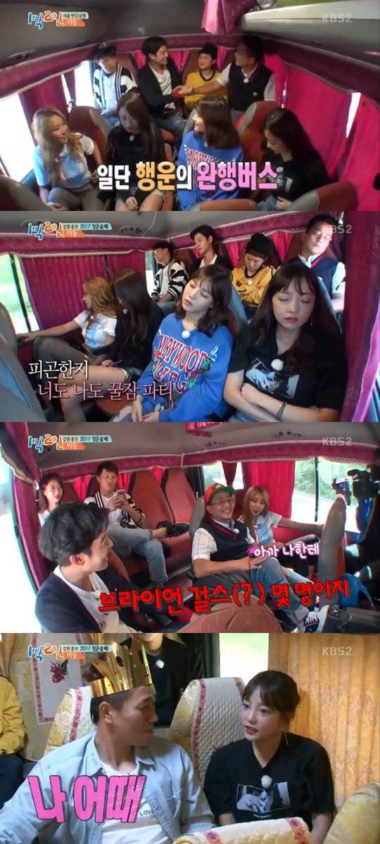 하지만 이후 완행버스에 김신영 나르샤 구하라 경리 유라 등 초특급 게스트들이 줄줄이 탑승해 이들을 깜짝 놀라게 했다. 특히 김신영 나르샤 구하라는 과거 '청춘불패'에 출연했던 멤버들. 여성 게스트들의 출연에 완행버스 팀은 기세등등해졌고, 직행버스 팀에 영상 전화를 걸어 자랑을 늘어놨다.