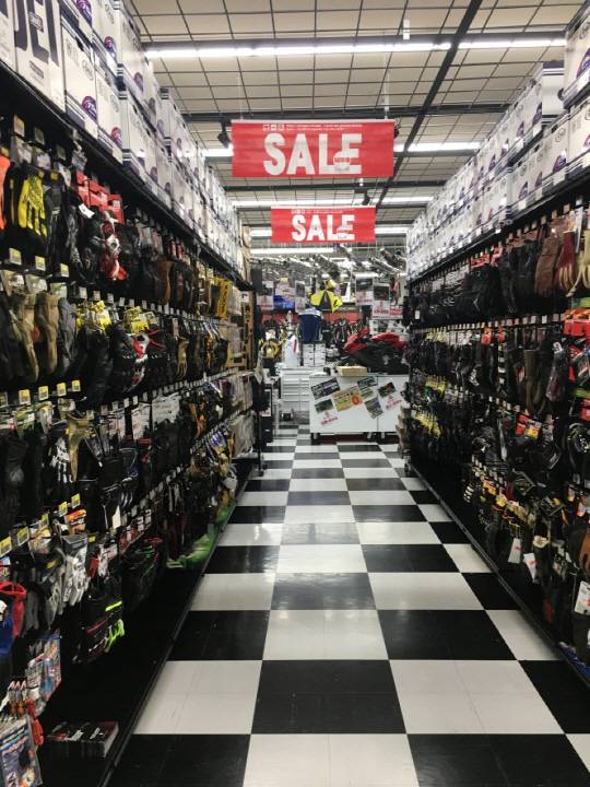 규모는 정말 둘마트나 집더하기마트 같은 크기는 아니지만 큽니다. 우리나라에는 있을 수 없는 규모죠. 라이딩 재킷·바지만 파는 데 그치지 않고 각종 부품, 튜닝용품 등도 어마어마하게 많습니다. 물론 전 그런 쪽에는 별 관심이 없어서 구경도 안했지만요.