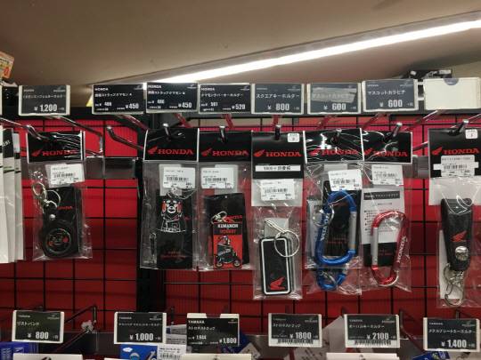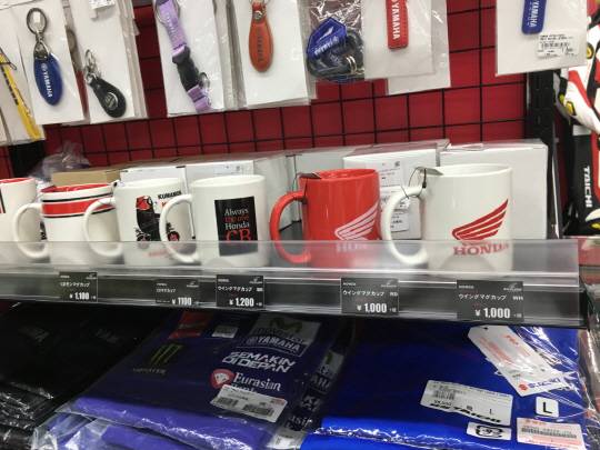그리고 한켠에선 소소한 바이크 굿즈를 팔고 있더군요. 제조사별 열쇠고리는 기본이고, 컵도 있네요. 혼다 컵이라니. 역시 오타쿠가 살기 좋은 나라, 일본입니다.