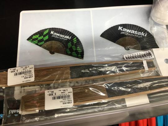 역시 가와사키의 센스는 유별납니다. 모터사이클 제조사가 자사의 시그니처 컬러를 집어넣어서 만든 굿즈가 요요랑 부채라뇨(절레절레). 좀 이상한 녀석들입니다. 하지만 그런 면이 더 러블리하달까?(뭐래)