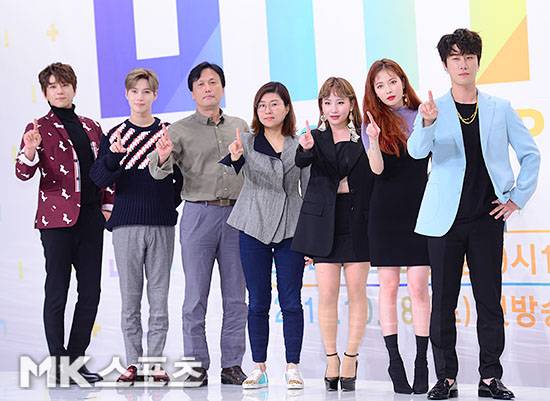황치열, 태민, 한경천 CP, 박지영 PD, 조현아, 현아, 산이(왼쪽부터)가 포즈를 취하고 있다.