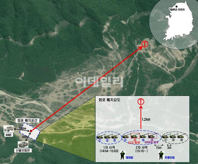 K-9 자주포의 탄은 ‘6호 장약’ 사용시 최대 사거리인 약 40㎞까지 나간다. 이번 훈련에선 35㎞의 사거리를 낼 수 있는 ‘5호 장약’이 사용됐다. 이번 사고 자주포에선 화포 내 장약 3발이 흔적도 없이 연소됐다.