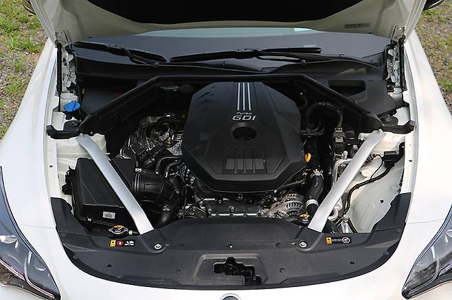 아무리 다운사이징이 대세라고 해도 배기량의 한계는 있는 법이고, 3.3L 엔진이 뿜어내는 최고출력 370 마력, 최대토크 52.0 kg-m을 따라잡을 수는 없다. 그러나 가속 페달에 발을 올리는 순간 2.0L 엔진의 출력도 제법이라고 느껴지는데, 그 이유는 작은 엔진을 탑재한 만큼 경량화되었기 때문이다. 시승차의 공차중량이 1,670 kg이고 3.3L 4륜구동 모델의 공차중량이 1,855 kg이니 무게 당 마력에서 2.0L 스팅어가 결코 크게 뒤지지 않는다는 것을 알 수 있을 것이다.