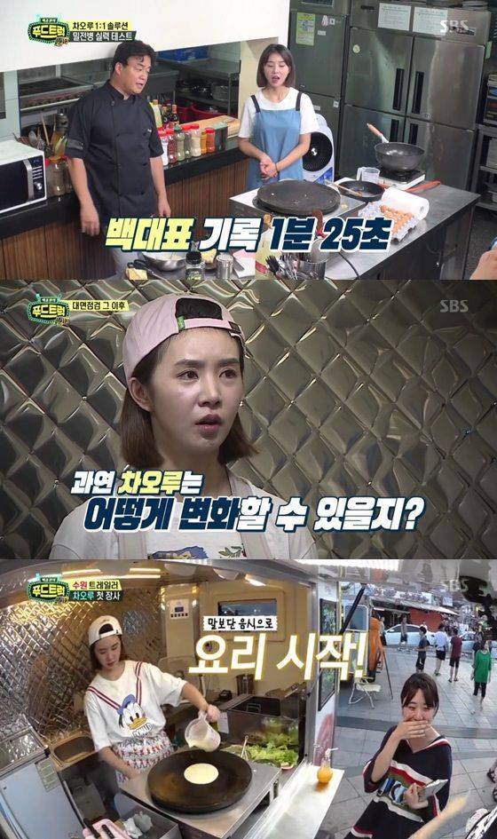 차오루는 지난 26일 방송된 SBS '백종원의 푸드트럭'에서 본격적으로 푸드트럭에서 장사를 시작한 모습을 보여줬다. 요리 실력과 장사 노하우가 아마추어지만 차오루는 최선을 다해서 음식을 만들고 고객을 응대했다. 음식 간이 싱겁다는 손님에게 "돈을 받지 않겠다"고 하는 등 미안해서 어쩔 줄 몰라하기도 했다.