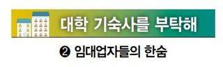 ■ 갈등조정·민간임대업 양성화 함께 가야 그러나 현행 ‘대학설립 운영 규정’을 보면, 기숙사는 의무적으로 설치해야 하는 ‘교육기본시설’이 아니라 필요한 경우에 만드는 ‘지원시설’로 분류돼 있다. 교육부의 대학평가 항목에도 기숙사를 비롯한 주거 지원은 반영되지 않는다. 대학은 기숙사 신축에 미온적이고, 민간 임대업자들은 ‘기숙사 설립이 생존권을 침해한다’며 기숙사 반대 운동의 전면에 나선다. 갈등을 조정해야 할 지방자치단체는 ‘표심’이 되는 지역 주민들의 요구에 수세적인 태도를 취하는 경우가 많다.