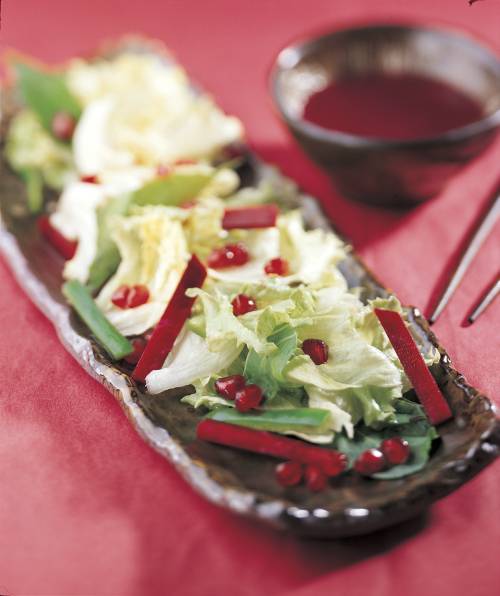 | 석류샐러드 재료:석류 1/2개, 양상추 1/2개, 파프리카 1/2개, 비트 20g, 로메인상추 20g 만드는 법 ①양상추 파프리카 로메인 상추는 손으로 먹기 좋은 크기로 잘라 찬물에 담근다. ②비트는 채를 썰어준다. ③석류 알갱이는 알알이 딴다. ④③과 올리브유 소금 후추 설탕 식초를 믹서기에 갈아 소스를 만들어준다. ⑤야채를 물기 제거 후에 그릇에 담고 ④를 뿌린다. |