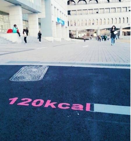 | ▲성신여자대학교의 '3단 언덕'을 모두 오르면 120칼로리가 소모된다는 것을 알리는 표시 /사진=인스타그램 'love***' |