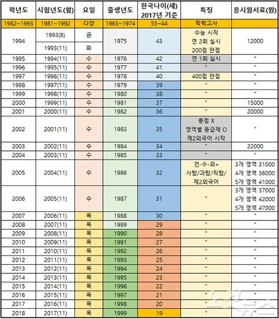 [데이터] 75년생부터 99년생까지..수능 24년의 역사