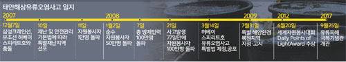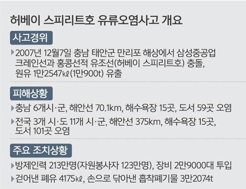 2007년 12월7일 오전 7시6분. 충남 태안군 만리포해수욕장 앞바다에서 홍콩 국적 대형유조선 허베이 스피리트호와 삼성중공업 해상 크레인이 충돌했다. 이 사고로 유조선 오일탱크에 구멍이 생기면서 기름 1만2547㎘가 국내 유일의 해안국립공원인 태안 앞바다를 덮쳤다.생명의 바다가 죽음의 바다로 변한 사상 최악의 해양오염 사고였다.