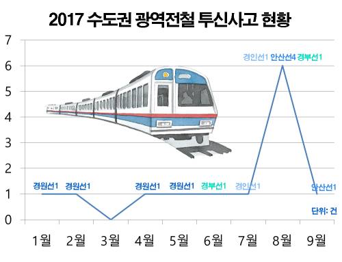 지난 1~5월 경기 의정부 일대 경원선 지하철에서 한달에 한번 꼴로 투신사고가 일어났고, 6~8월까진 경부·경인선 일대에서 총 4건, 8~9월은 4호선 안산선에서만 무려 5차례의 투신이 발생했다.