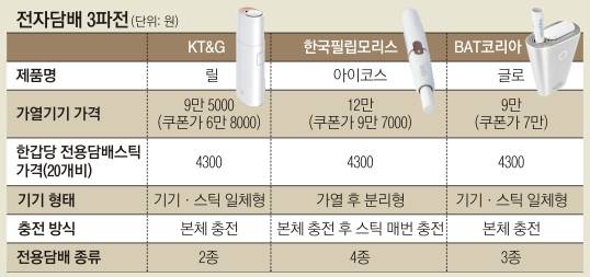 [서울신문]국내 담배업체 KT&G가 궐련형 전자담배 시장에 뛰어들었다. 이로써 외국계 담배업체들이 양분했던 전자담배 시장은 3파전으로 재편됐다. 시장점유율과 제품가격 등을 둘러싼 경쟁이 치열해질 전망이다.