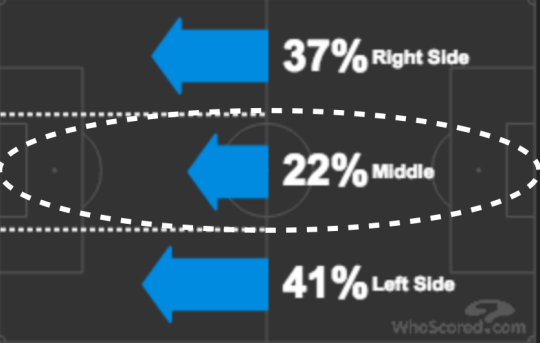 이러한 토트넘에 막힌 도르트문트는 수비수에게서 공을 받은 누리사힌과 다후드가 앞선의 카가와 신지에게는 공을 전달하지 못했고, 양 사이드로만 벌리기 일쑤였다. 이러한 플레이는 중원 핵심 공간을 활용한 플레이를 이용하지 못하게 됐고, 사이드를 이용한 공격은 촘촘한 토트넘 5백의 공간을 뚫는데 어려움을 겪었다. 빠른 전환과 역습이 장점인 도르트문트를 상대로 토트넘은 시종일관 깊게 내려앉아 뒷공간을 내주지 않았고, 도르트문트의 장점을 차단했다.