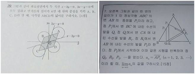 | ▲ 초록동색(草綠同色) 2017년 3월 고2 모의고사와 1학기 때 교내에서 실시된 ‘창의 융합 매쓰오름 대회’의 문제를 하나씩 발췌해온 것이에요. 다른 점이 보이시나요? |