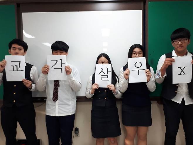 항상 상상 그 이상을 보여주는 남구현 선생님은 1학기 '문학'을 토론식 교육법인 하부르타 수업 방식으로 진행하셨고, 2학기 '화법과 작문'은 바나나 게임(5개의 그룹으로 나누어 각자가 최대한 이득을 보도록 협상하는 게임) 등 학생 활동 중심의 수업을 하고 계십니다.