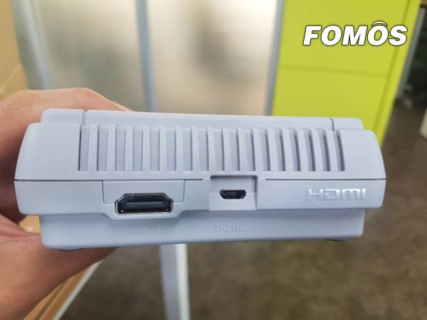 (왼쪽부터)HDMI 및 전원 단자. 5핀으로 제작된 전원단자에는 스마트폰 충전기로 전원 공급이 가능하다.