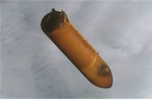 | 미국의 우주 왕복선 ‘아틀란티스’호가 발사된 뒤 떨어져 나온 연료 탱크의 모습. 출처=미국항공우주국(NASA) |