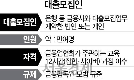 금융감독원에 따르면 현재 전국에 은행과 저축은행 등과 계약된 대출모집인은 약 1만여명에 달한다.