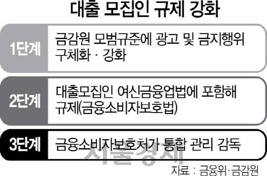 금융당국 고위관계자는 30일 “‘대출모집인 제도 모범규준’을 개정해 대출모집인 규제를 강화할 것”이라고 밝혔다. 금융위원회와 금융감독원은 우선 대출모집인 모범규준은 금지행위(11조)와 12조(광고)를 수정할 방침이다.