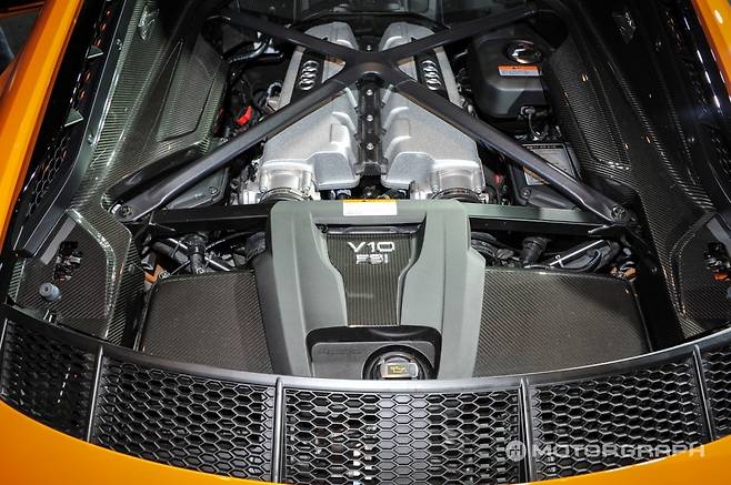 5.2리터 V10 가솔린 자연흡기 직분사 엔진은 최고출력 610마력, 최대토크 57.1kg.m의 성능을 발휘한다. 정지 상태에서 시속 100km까지 도달하는 시간은 3.2초에 불과하며, 최고속도는 시속 330km에 달한다. 또 변속기와 기어 레버가 전자식으로 제어되는 시프트-바이-와이어(shift-by-wire) 기술이 적용된 7단 S트로닉 듀얼 클러치 변속기, 콰트로 상시 사륜구동 시스템 등이 역동성을 함께 높인다.