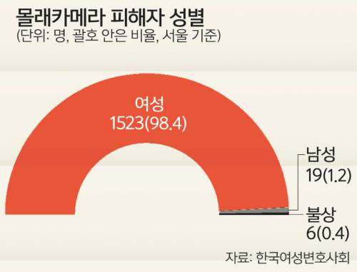 몰카 촬영을 포함한 관음증은 대표적인 사이버 성폭력이다. 관음증의 대상은 남녀를 구별하진 않지만 피해자의 98%가 여성이다. 공중화장실·탈의실·지하철 등 공공장소에서 벌어지는 도촬 앞에 불특정 다수의 여성이 관음증의 표적이 된다. 리벤지 포르노의 피해자 역시 여성이 될 수밖에 없다.