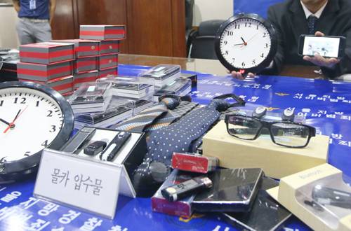 | 경찰청에 압수된 각종 몰래카메라들. |
