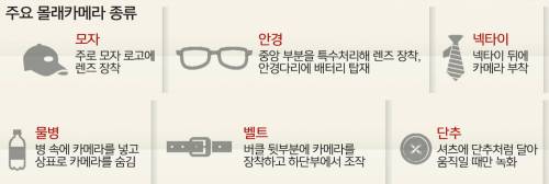 신종 몰카 장비들로 도촬 역시 무차별적으로 확산하고 있다. 해가 갈수록 발전하는 신종 몰카는 놀라울 정도다.