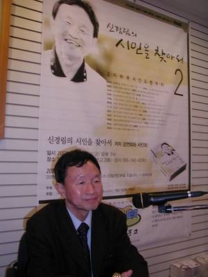 그러면서 당시 살았던 "로버트 브라운"이란 시인은 39살까지 살면서 워즈워드를 비판했다고 소개. "브라운은 워즈워드는 80살까지 살았는데, 얼마나 오죽 했으면, "그가 모든 시인을 망신시켰다"고 하고 "시인은 빨리 죽어야 한다"고 했겠느냐"라고 소개.신경림 시인은 그러면서 "우리나라에도 시인 중에 젊었을 때 좋은 시를 쓰다가 늙어서 나쁜 시를 쓰고, 나쁜 짓을 많이 한 시인들이 있다"고 말했다. 남한에서는 서정주 시인, 북한에서는 이병철 시인을 예로 들어 설명했다. 서정주 시인의 "동천"이란 시도 감흥이 없는 시라고 비판했다. "행적이 나쁘기에 좋은 시로 읽혀지지 않는다"는 것.그는 서정주와 이병철 시인은 "나쁜 시"를 쓰고서, 권력자로부터 대가성을 받았다고 지적했다. 서정주 시인은 "전두환 전 대통령 앞에서 "축시"를 써주고는 세계일주여행이란 대가"를, 이병철 시인은 ""김일성 찬가"라는 시를 써주고는 북한에서 편안한 생활을 보장받았던 것"이 대가성이라 설명.올해 67살인 신경림 시인은 충주에서 태어나 56년 <문학예술>에 시 "갈대"로 등단했고, 73년 첫 시집 <농무>를 냈다. 만해문학상, 한국문학작가상, 이산문학상, 단재문학상을 받았고, <새재> <달넘새> <남한강> <길> <쓰러진 자의 꿈> <어머니와 할머니의 실루엣> <뿔> 등의 시집이 있다.