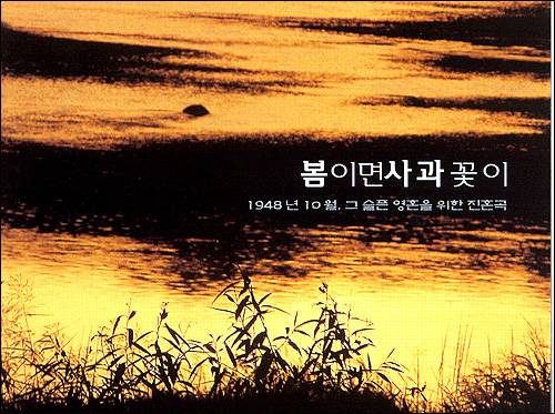 ▲ 여순사건 진혼앨범 "봄이면 사과꽃이" 앨범 표지. "1948년 10월 하순, 아름다운 항구도시 여수는 불바다가 되었다. 여수14연대 군인들의 봉기로 촉발된 여순 10・19사건. 이념의 칼날은 죽음과 죽임의 붉은 피에 젖어 무고한 민간인의 수많은 생명을 앗아갔다. 차마 입과 가슴에조차 묻지 못한 사연들을 노래 가락 몇 사위로 삭여야했던 남도 사람들. 이제, 그 시절 옛 노래와 우리의 시가(詩歌)를 모아 민족의 화해와 통일을 염원하며 희생자들의 고혼(孤魂)에 바친다."죽음의 역사가 남긴 피울음의 노래가 있다. 애끓는 가슴으로 숨죽여 부르던 그 노래들은 촌로(村老)와 운동권의 입을 통해 간신히 구전되어 전해져 왔지만 그 누구도 표면화시킬 엄두를 내지 못했다. 부역자로 내몰릴 것이 두려웠던 것일까? 아니면 그 노래의 무게를 감당할 자신이 없던 걸까?전남동부지역사회연구소(소장 이영진)가 그 어두운 무게를 감당했다. 지난 2001년 음반제작에 돌입한 이 단체는 2년여의 산고 끝에 여순사건 민간인 희생자 진혼앨범 <봄이면 사과꽃이 -1948년 10월, 그 슬픈 영혼을 위한 진혼곡>을 순수한 시민단체 힘으로 제작・출시했다.