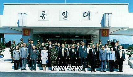 육군 제1 야전군 사령부(사령관 정수성)은 22일 초대 군사령관을 역임한 백선엽 장군 등 14명의 장군을 부부동반으로 부대로 초청한 가운데 기념촬영을 하고 있다.-지방기사 참조- /김영인/지방/사회 2004.9.22(원주=연합뉴스) kimyi@yna.co.kr