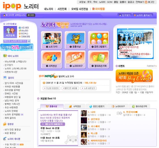 "아이팝"의 미니홈피인 "노리터"에 마련된 "노리터 게임방"에는 동물사냥, 사칙연산, 노리터야구, 같은그림찾기, 불타라 손가락 등 총 5개의 게임방이 선보인다.