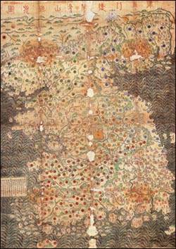 ▲ 17세기 후반에 제작된 "해동필도봉화산악" 지도 우리나라의 고지도를 보면 조선초에 발행된 고지도에서부터 한말에 이르기까지 거의 빠지지 않고 대마도가 우리나라의 지도에 등장하고 있음을 알 수 있다. 때문에 우리나라의 고지도에 등장하는 대마도는 대마도에 대한 우리의 영토의식을 충분히 반영한다고 할 수 있다.