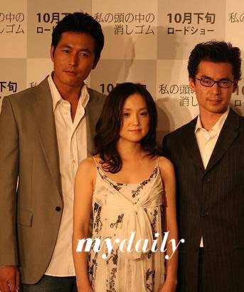 [마이데일리 = 도쿄 이태문 특파원] 오는 10월 하순 250개 이상의 개봉관을 통해 선보일 예정인 정우성 손예진 주연의 영화 '내 머리 속의 지우개'(이재한 감독, 싸이덕스픽쳐스 제작) 기자회견이 9일 도쿄 캐피털도큐호텔에서 열렸다. 이날 기자회견장에는 스틸 사진기자 100여명, 방송용 ENG카메라 30대, 그리고 신문 및 잡지 기자 등 400여명이 몰려 높은 관심을 보여줬다.