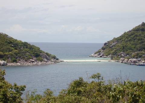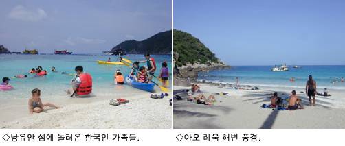 ◇섬 두개가 산호해변으로 연결된 낭유안 섬.