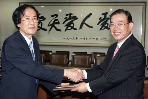 세계일보가 국내 최고의 고료 1억원을 내걸고 제정한 '제1회 세계문학상' 수상작 김별아의 '미실'을 출간, 세계문학상의 권위를 높이는 데 기여한 도서출판 문이당 임성규(왼쪽) 대표에게 세계일보 사광기 사장이 9일 감사패를 증정하고 있다. '미실'은 지난 2월23일 첫 출간한 뒤 지금까지 모두 36쇄 18만부를 인쇄했으며, 교보문고 국내소설 부문 1위, 영풍문고 종합 1위에 올랐다. 중국 출간 계약은 이미 마무리됐으며 일본·대만 등지의 해외출판도 활발하게 모색하는 중이다. 국내 굴지의 영화사와 판권계약도 완료, 늦어도 2년 안에는 '미실'을 영화와 드라마로도 만날 수 있을 것으로 보인다.