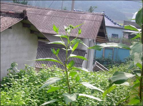 | ▲ 인가주변에서 쉽게 볼 수 있었던 돼지감자는 한번 뿌리내리면 뽑아내고 밟아도 어지간해서는 다시 자란다. 2005년 9월 20일 전라도에서 |