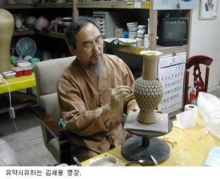 최근 일본 아이치 현에서 열린 세계도자박람회에 그의 작품 3점이 소장되고, 2중투각매화병이 요미우리신문에 의해 명품으로 선정된 것이 기쁘다는 김세용 명장.