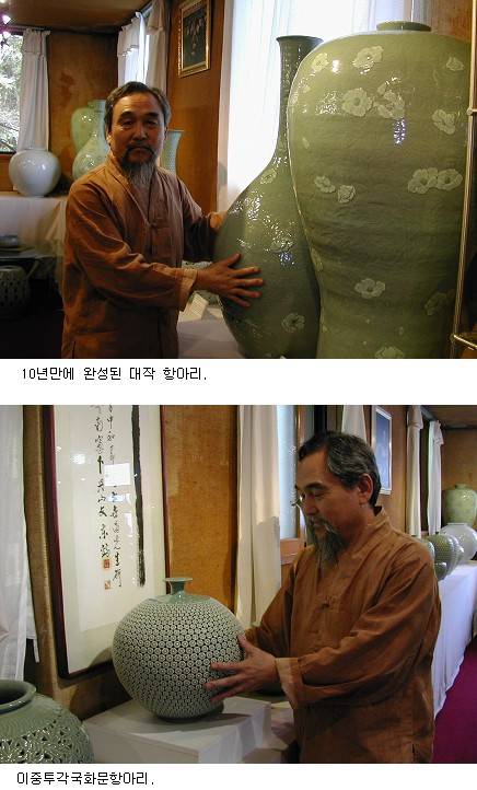 이렇듯 완벽을 추구해야하는 청자를 그것도 제작과정이 어려워 남들은 엄두도 내지 못하는 2중 투각기법―문양을 따낸 외피와 그릇으로서 쓰임새에 충실한 내피의 이중구조로 도자기를 만드는 것―을 고집하는 이유를 김세용 명장은 이렇게 말한다.
