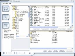 매니저 프로그램은 겉으로 봐선 MR-F30에 제공하는 것과 큰 차이는 없지만 내부에는 상당히 많은 기능을 추가했다. MR-F20은 이동식 디스크로 인식되는 모델이어서 매니저 프로그램은 파일 전송보다는 MP3 파일의 통합 관리 기능에 중점을 두고 있다.