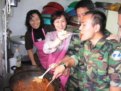 이 시간만 되면 장병들의 입가에는 온통 웃음과 환희가 가득찬 가운데 즐겁게 식사하고 모자란 음식은 셀프 서비스가 아닌 직접 가져다 주는 최고의 써빙의 서비스까지 직접 도맡아 한다.