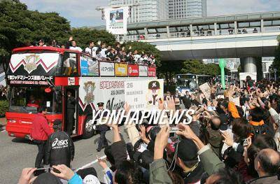 (서울=연합뉴스) 장현구 기자 = 31년 만에 일본프로야구 최정상에 오른 지바 롯데 마린스가 20일 지바시에서 벌인 우승 퍼레이드에 24만 명의 팬이 운집, 엄청난 열기를 반영했다.