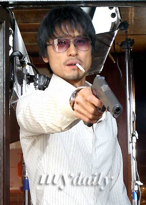 22일 오후 3시 전북 군산시 경장동 주택가에서 진행된 영화 '홀리데이'(양윤호 감독, 현진씨네마 제작) 촬영장에서 맞붙은 두 사람은 강렬한 표정연기와 진한 남성미를 발산하며 �i고 �i기는 긴장된 모습을 극적으로 표현했다.