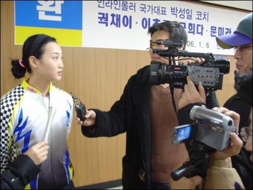 특히 이날 취재진으로부터 스포트라이트를 받은 궉채이는 예쁜 얼굴로 '얼짱'이라 불리며 인라인의 대중화 붐을 일으킨 스포츠스타다. 2004년 이탈리아 세계선수대회에서 주니어 부문 2관왕에 오른 '인라인계의 요정'으로 성인 무대에 본격적으로 나세게 되었다.
