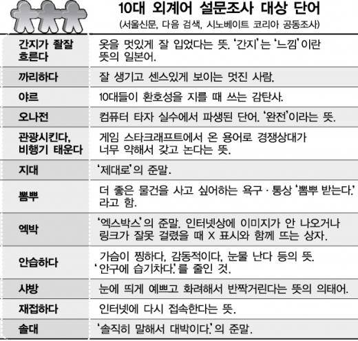 ● 10대들만의 '외계어'… 세대언어 격차 심화