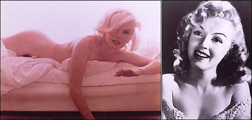 | ▲ 버트 스턴이 촬영한 마릴린 먼로 미공개사진들 가운데 두 작품인 '나 어때요?'(왼쪽)와 '모피와의 도피'. 사진전은 런던 스미스필드 시티 갤러리에서 2월 24일까지 열린다. |