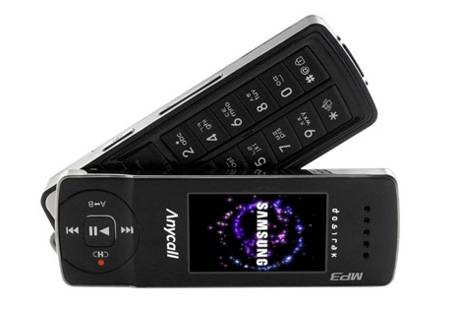 크기 84.5×29×21.5mm, 무게 77.5g으로 작고 가벼운 초소형 MP3폰 삼성전자 SPH-S4300. 목걸이형 MP3폰으로 사용하기에 안성맞춤인 제품으로 스윙폴더 방식의 디자인을 채용했다. |