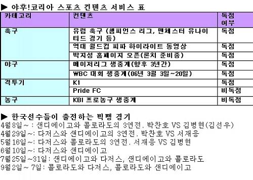 야후는 지난 3월, 미디어코프(대표 최영재)와 스포츠 콘텐츠 제휴를 맺고 앞으로 3년간 메이저리그 온라인 독점 중계권을 확보했다.