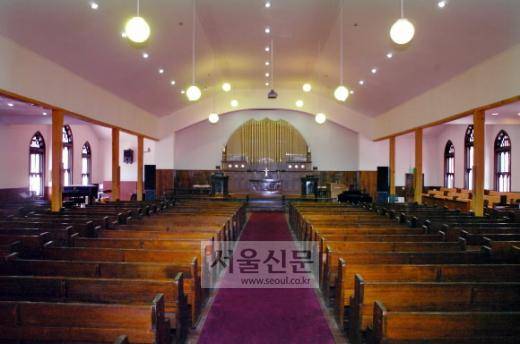 예배당이 처음 건립됐을 때만 해도 의자 없이 마룻바닥에 남녀가 따로 앉아 예배를 보았으며 남녀석 가운데에는 휘장을 쳐 남녀를 구분했다.