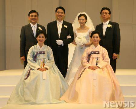 29일 서울 신라호텔에서 중앙일보 홍석현 前 회장 장남 정도씨와 서울대 공대 윤재륜 교수(재료공학부)의 장녀 선영씨가 이어령 전 문화부장관 주례로 결혼식을 올렸다.(사진=중앙일보 제공)/서재훈기자jhseo@newsis.com