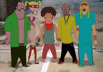 2002년 결성된 오인용(5p)은 정지혁(혁군)·장석조(데빌)·장동혁(씨드락)·민상식(씩맨)·천상민 5명의 팀이다. 계원조형예술대를 졸업한 이들은 원하는 애니를 마음껏 만들기 위해 회사를 그만두고 자체 제작한 플래시 애니를 인터넷에다 띄웠다. 이 가운데 하나가 '무뇌중'과 '스티붕유' 캐릭터를 등장시켜 욕설과 폭력에다 웃음을 버무린 '연예인 지옥' 시리즈. 연예인 병역기피 이슈와 맞물려 네티즌들은 열광했다. 이마에 숫자 '5'가 찍힌, 모가지 싹둑 잘린 대머리 아저씨가 '오인용!'이라 외치는 이들 홈페이지에 하루 10만명이 몰려들더니, 누적 접속자 수가 4000만명에 이르렀다. 두달 만에 10만명을 모아 최단기간 최대회원수 모집 기록을 세운 팬클럽 카페의 회원 수는 지금 60만명 수준이다. 톱스타 연예인 이상이다.'돼지','폭력교실','바나나걸' 등 후속작도 히트했다.'인터넷 하위문화'의 전범으로 이들 작품을 분석하는 글도 나왔다.